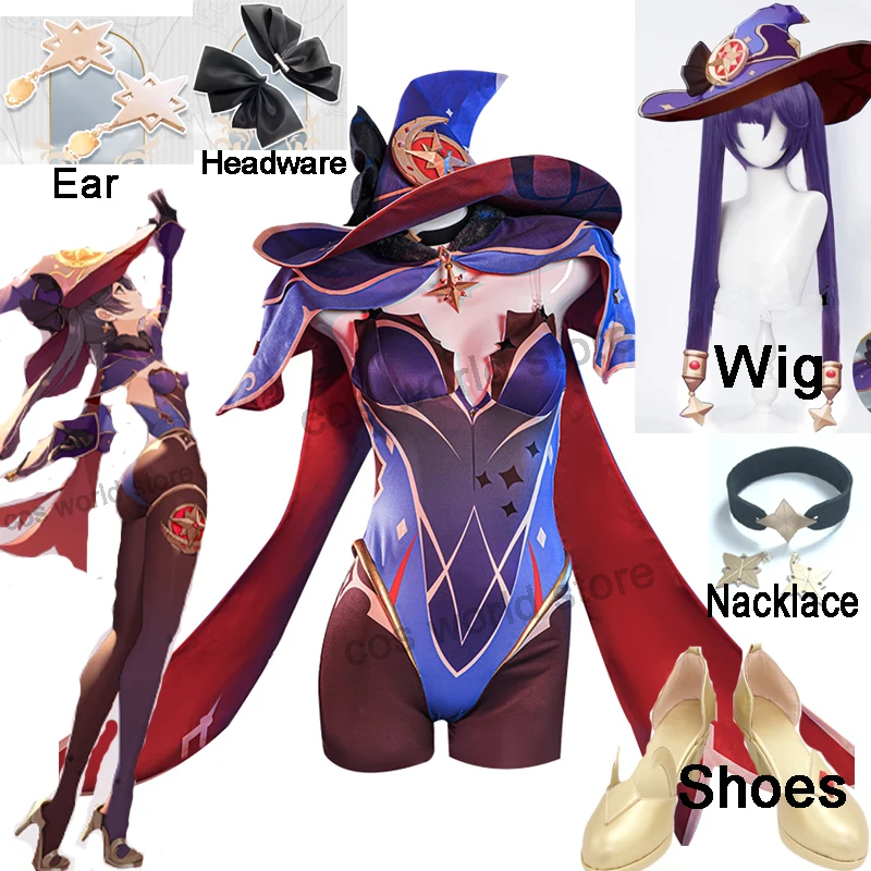 Женский костюм для косплея Genshin Impact Mona, сексуальное платье, униформа для Хэллоуина, вечеринки, парик, обувь, головной убор, серьги
