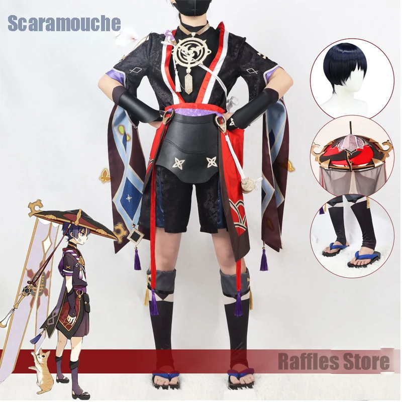 Женский костюм для косплея Genshin Impact Scaramouche Wanderer, парик Balladeer Kunikuzushi, черные Костюмные туфли Inazuma, Хэллоуин