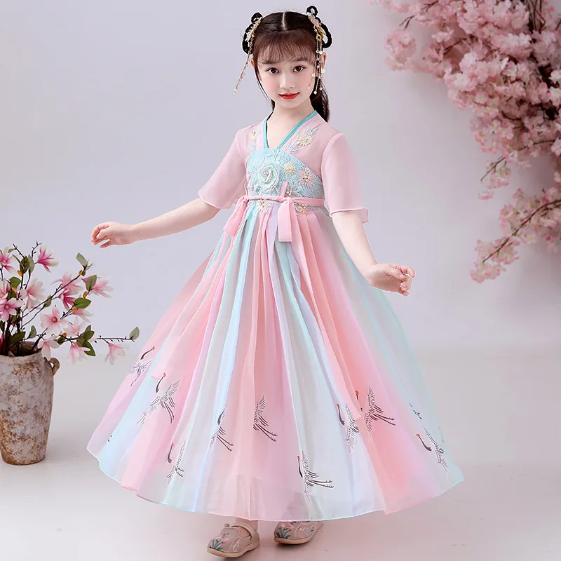 Женский костюм для косплея Hanfu, розовый костюм с цветочной вышивкой, украшенный бисером, стиль Тан