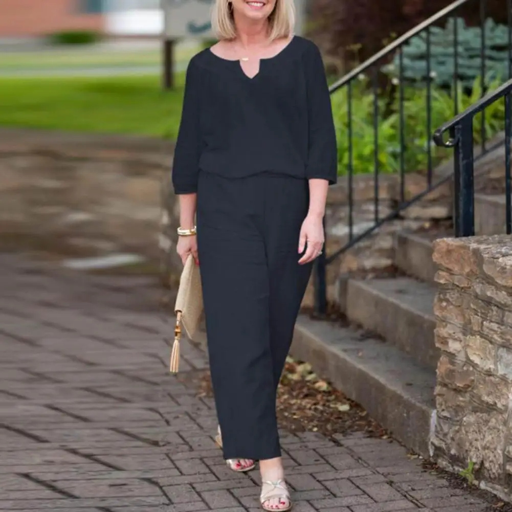 Женский костюм из двух предметов с брюками и поясом на резинке, стильный женский комплект из топа с V-образным вырезом и брюк с короткими рукавами и прямыми карманами для повседневного ношения