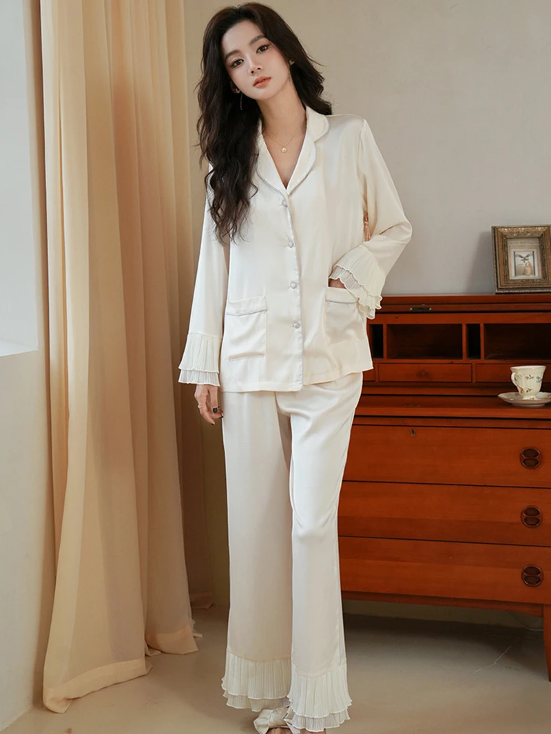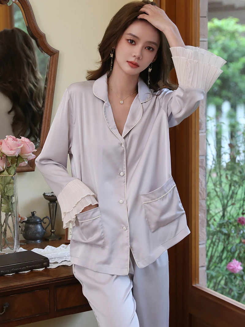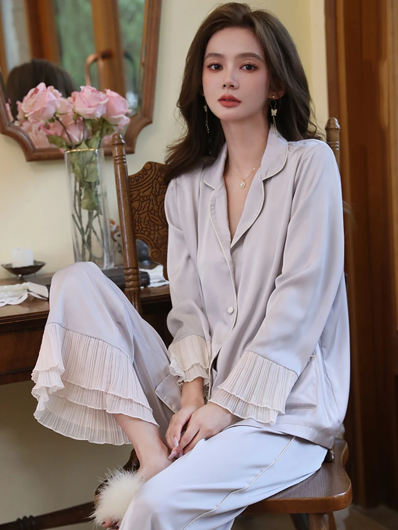 Женский костюм из двух предметов с длинными расклешенными рукавами и оборками