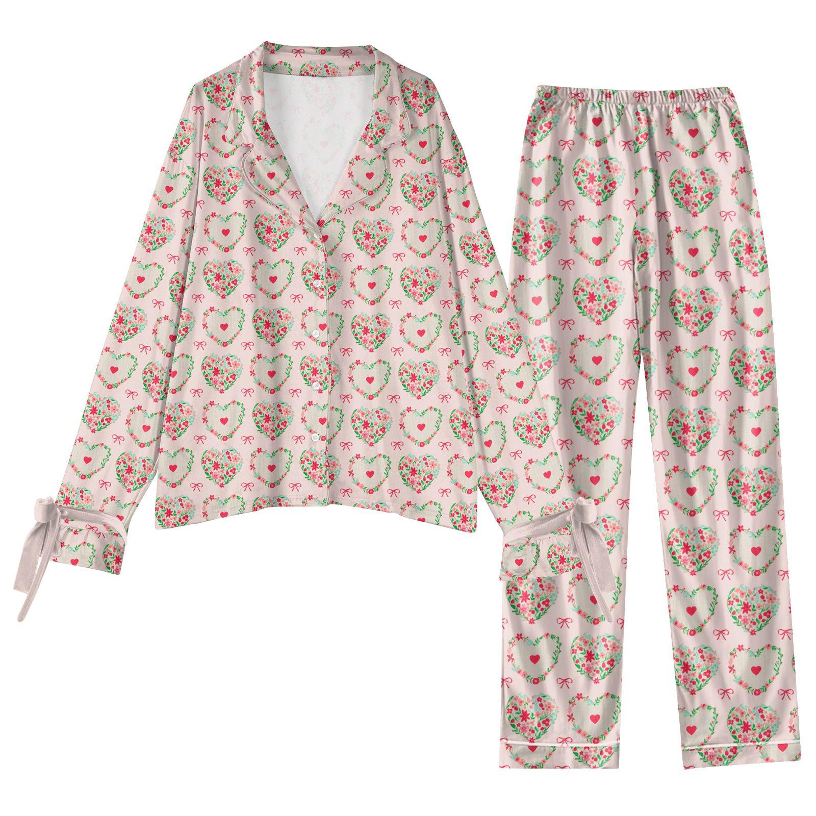 Женский костюм из 2 предметов с принтом, топ на пуговицах с длинными рукавами, широкие брюки, комплект, пижамный домашний повседневный костюм L бежевый
