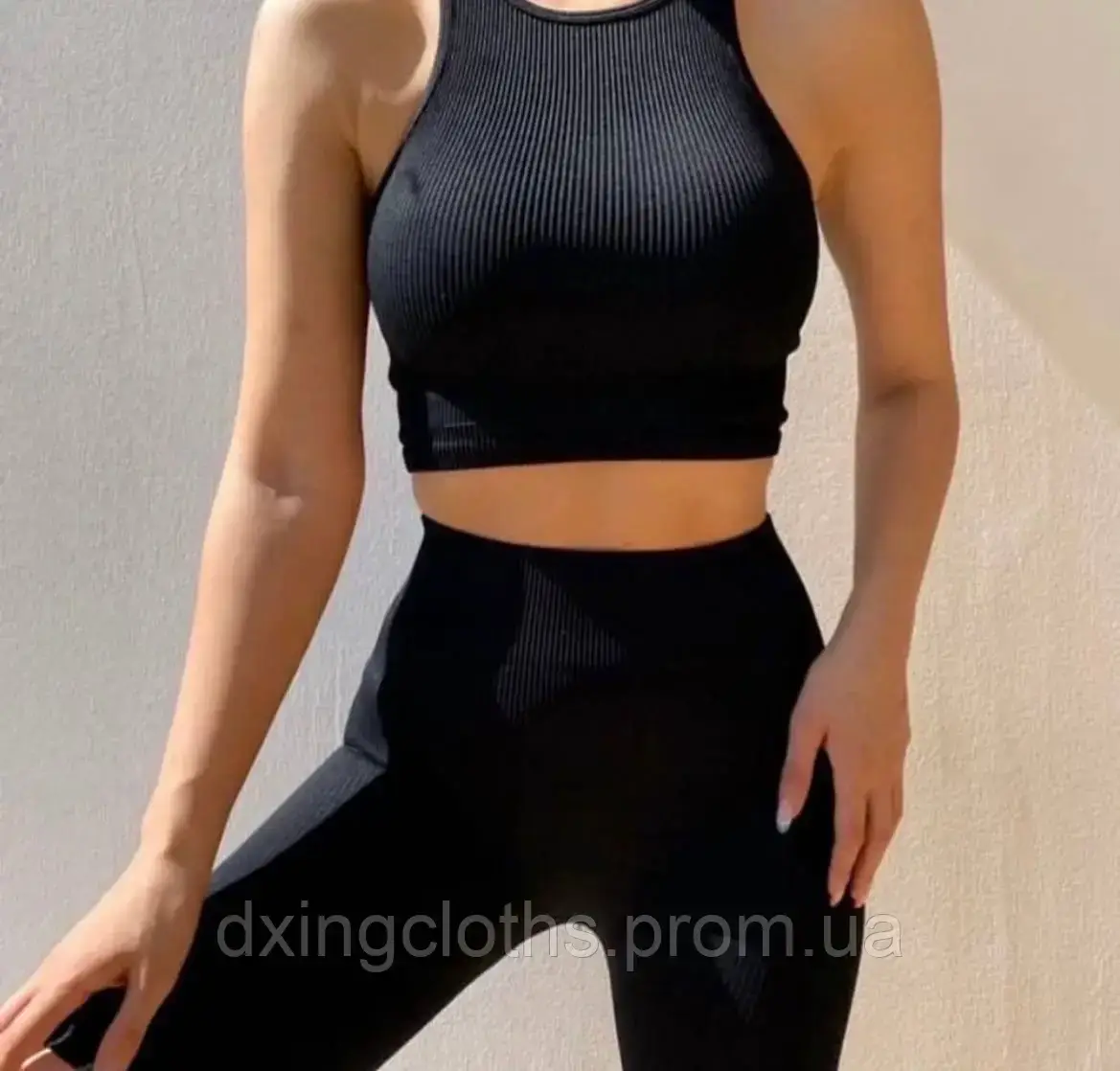 Женский костюм рубчик , женский костюм топ и велосипедки Черный