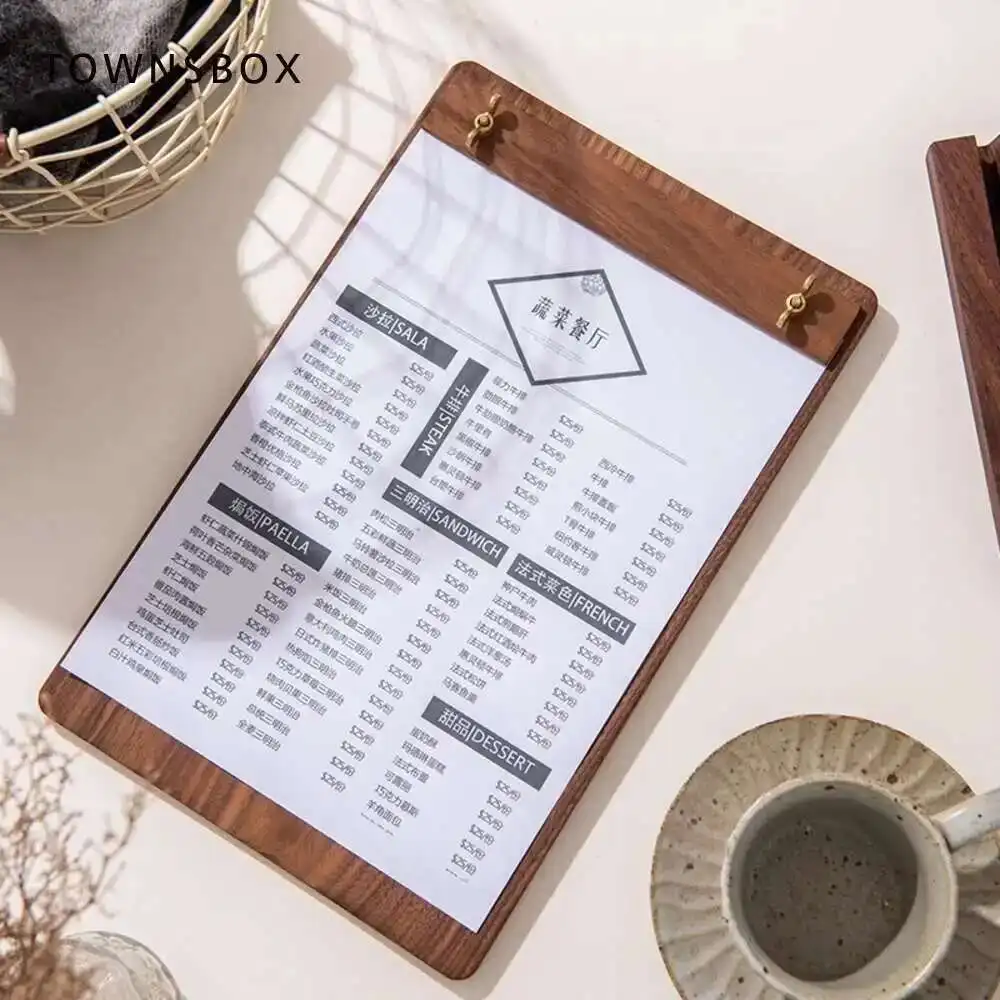 Japanese Style Black Walnut Brass Nail Coffee Writing Single Pad Restaurant Milk Tea Shop Menu Holder Stand Folder