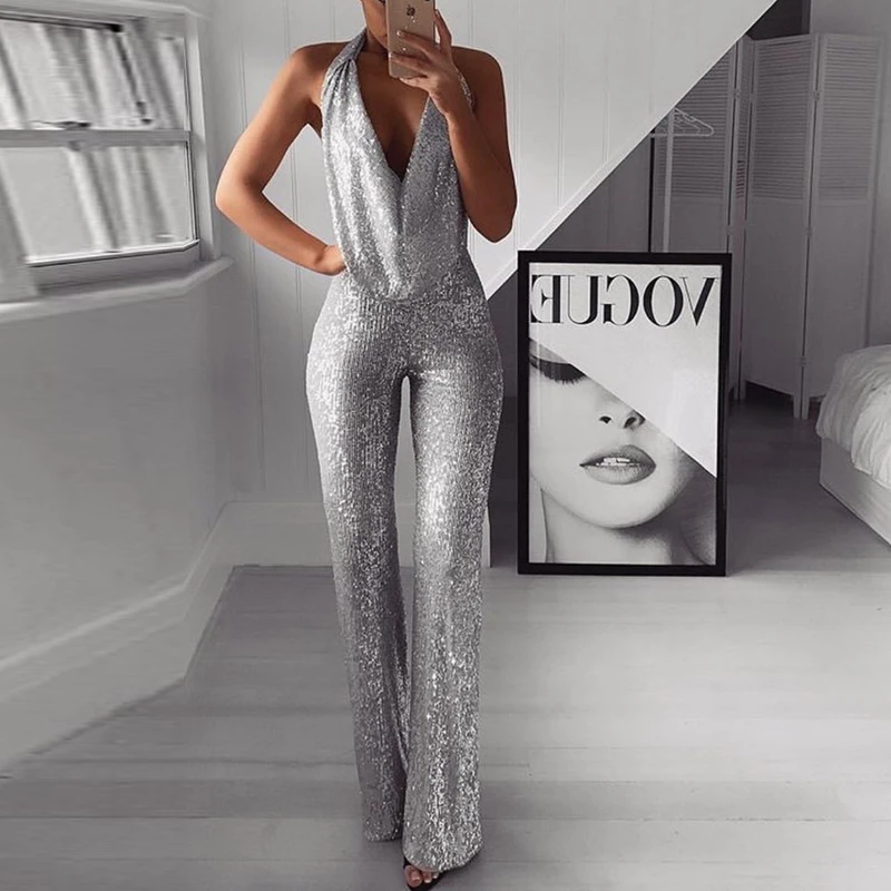 Женский костюм с блестками, рубашка без рукавов и прямые брюки с открытой спиной