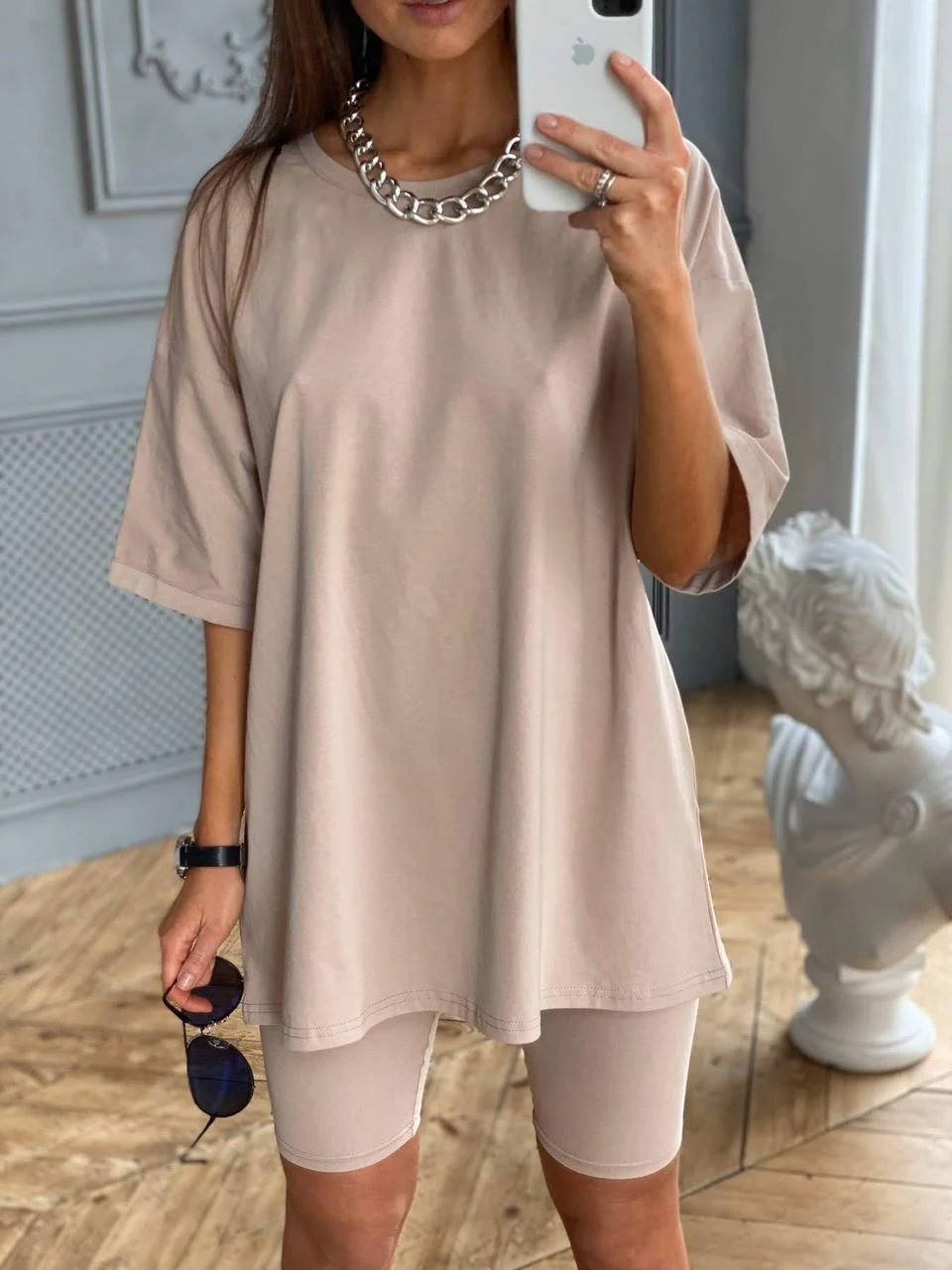 Женский костюм с футболкой оверсайз и велосипедками "Rocco" телесный, Разные цвета