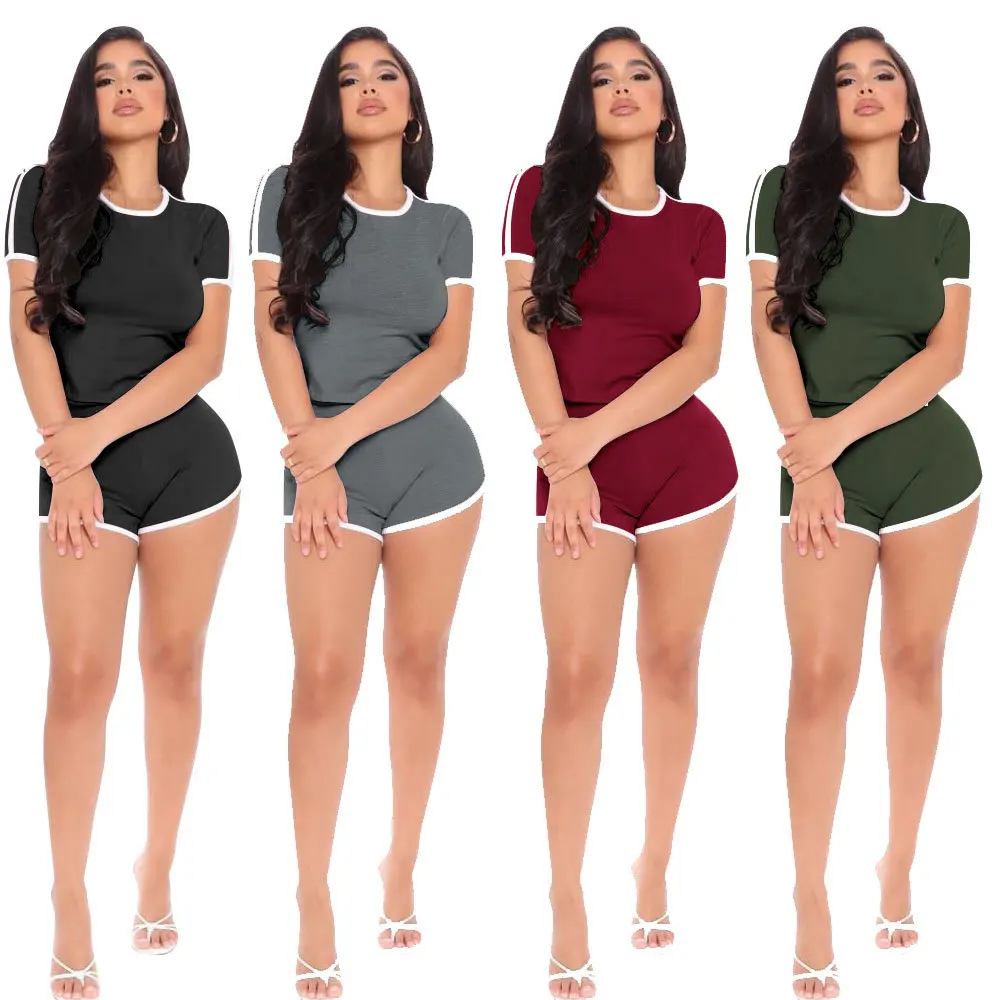 Женский костюм с футболкой и шортами с коротким рукавом, однотонный повседневный костюм из двух предметов в европейском и американском сти...