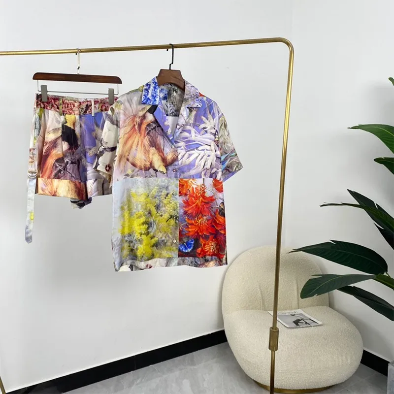 Женский костюм с шортами, однобортная блузка с отложным воротником и шортами с цветочным принтом