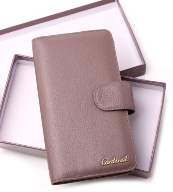 Женский кошелек Cardinal клатч из натуральной кожи портмоне кожаный кофейный