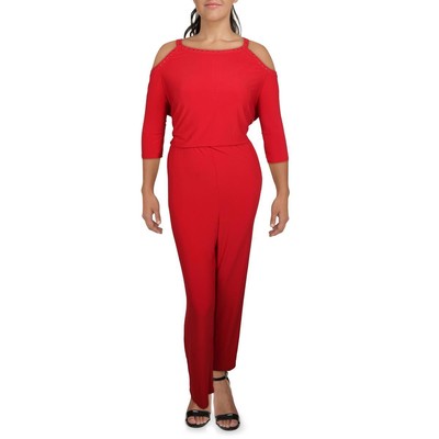 Женский красный комбинезон NY Collection с открытыми плечами и открытой спиной Plus BHFO 6966