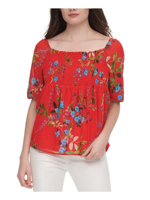 Женский красный эластичный топ с квадратным вырезом и рукавами до локтя CALVIN KLEIN, размер
