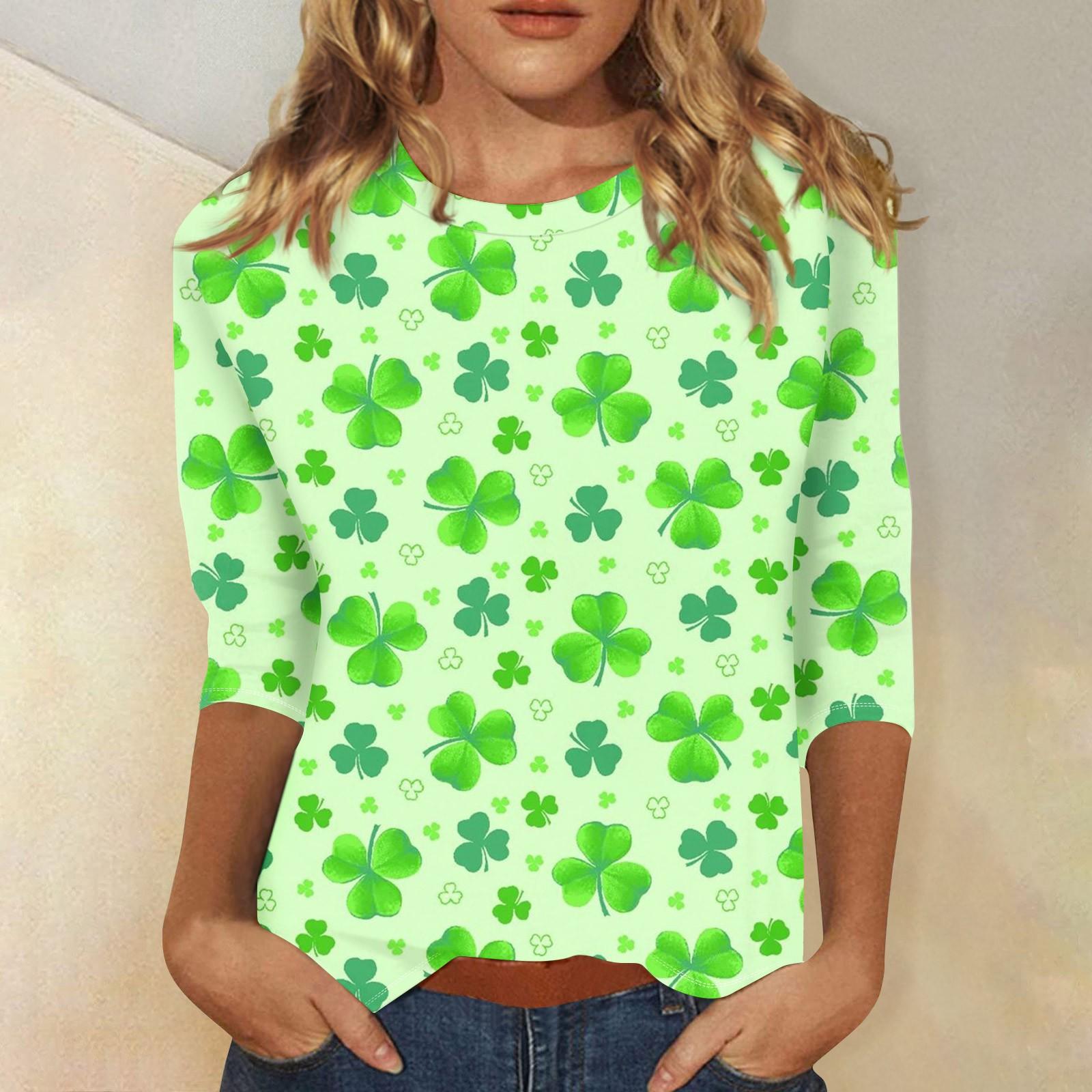 Женский круглый вырез, рукав 3/4. Топ с принтом ко Дню Святого Патрика L армия зеленый