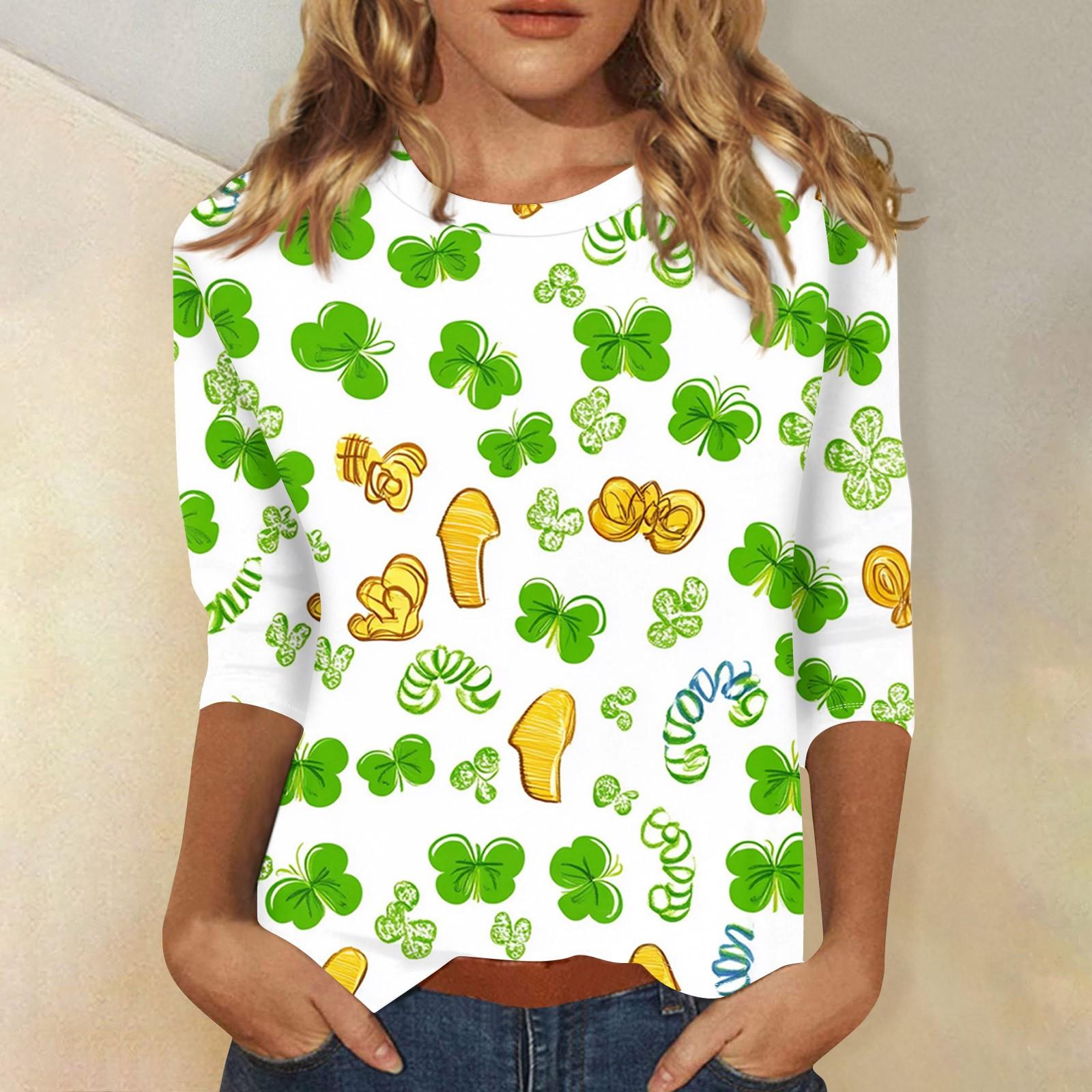 Женский круглый вырез, рукав 3/4. Топ с принтом ко Дню Святого Патрика L синий