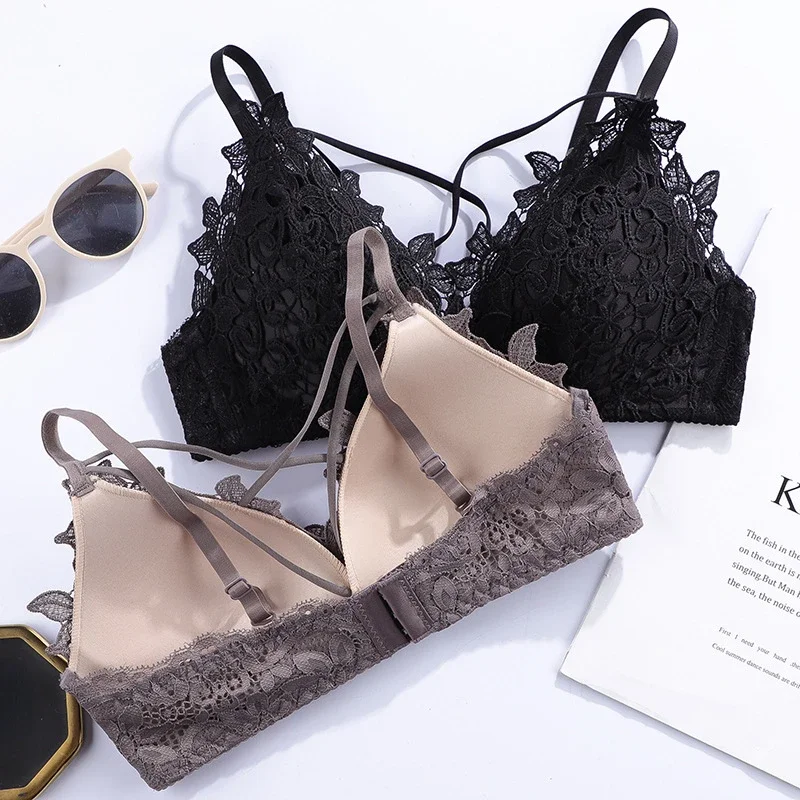 Женский кружевной бюстгальтер с чашками пуш-ап и глубоким V-образным вырезом