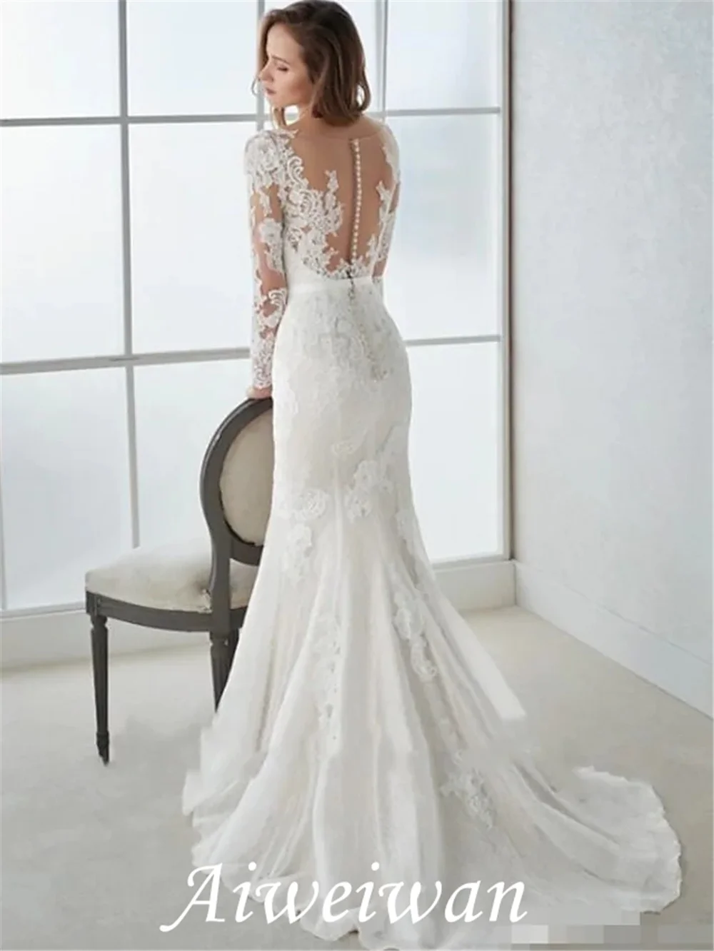 Женский кружевной тюль с юбкой-годе, V-образным вырезом и длинным рукавом