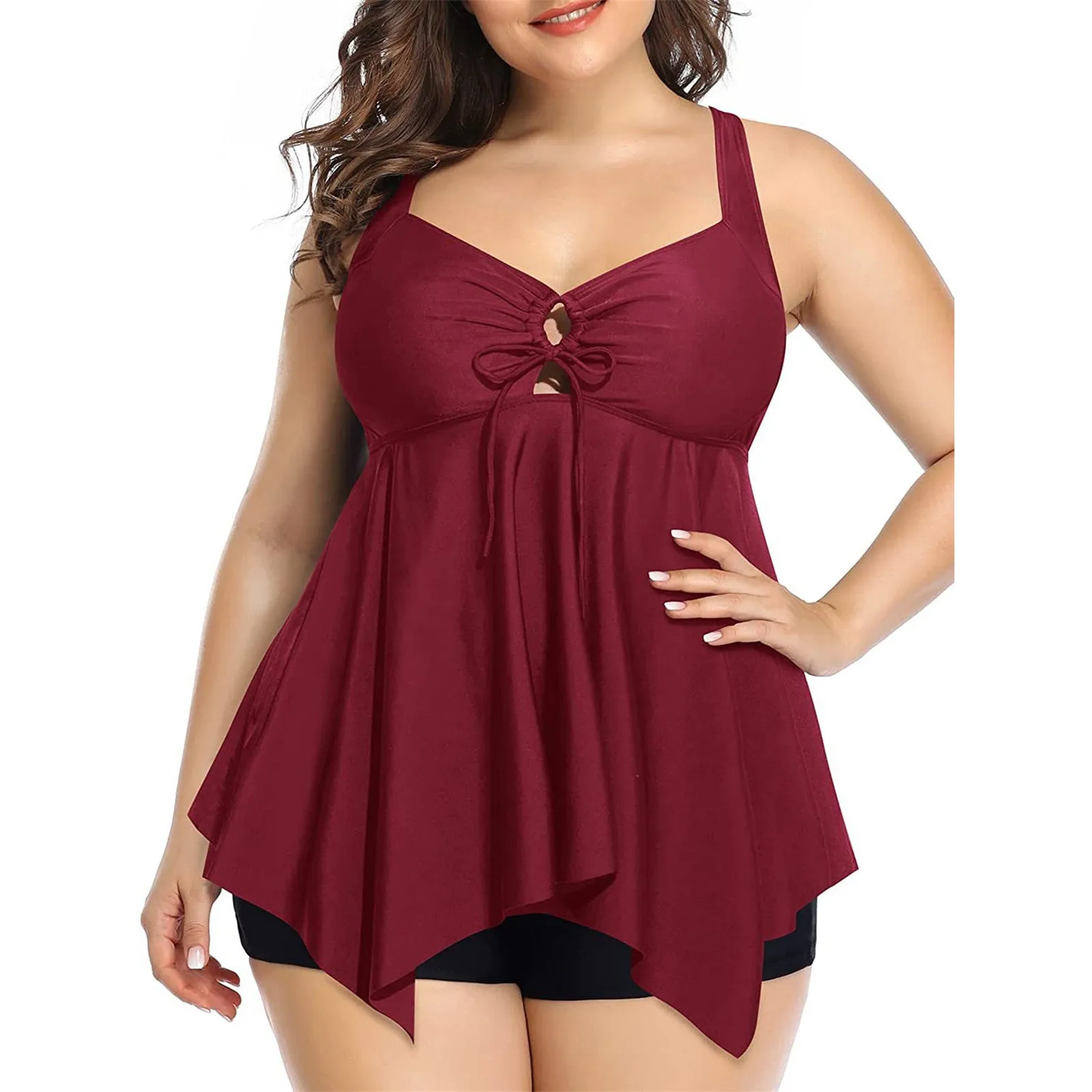 Женский купальник из двух предметов, танкини с цветочным принтом и шортами