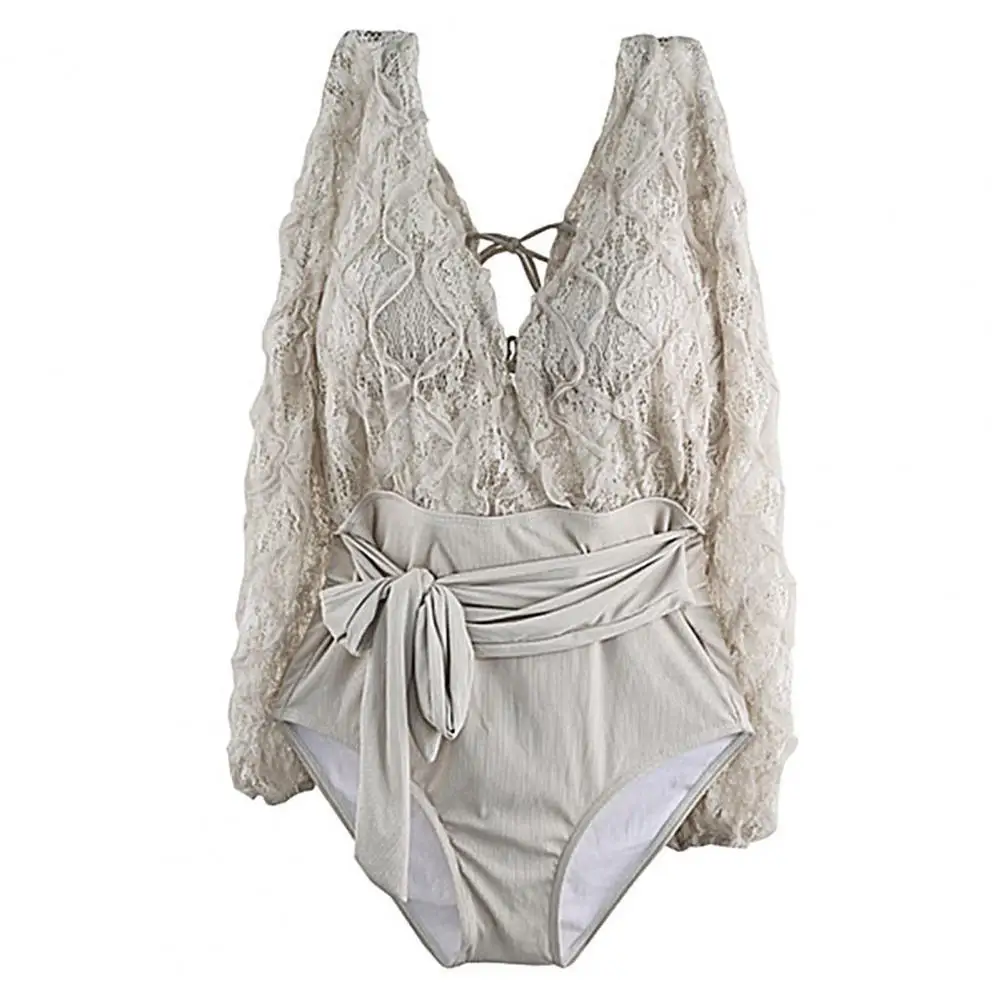 Женский купальник, монокини, кружевной дышащий слитный купальник с длинным рукавом для женщин, для отдыха, пляжа, море, 2022 новинка