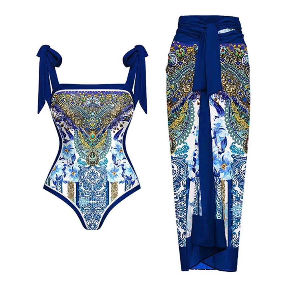 Женский купальник с квадратным вырезом и абстрактным принтом для отпуска