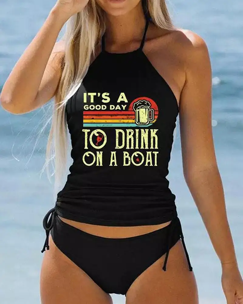 Женский купальник-танкини на завязках, с принтом в виде лодки