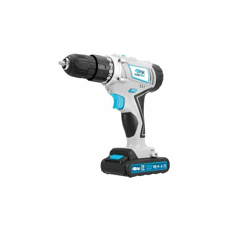 FSKTAB001 taladro atornillador con batería de ion litio 21V (2.0 Ah), 2 velocidades, 17 posiciones, 40Nm de par de giro, percutor, gatillo sensible a