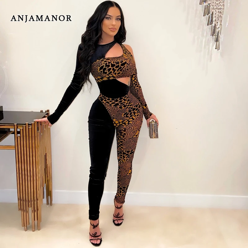 Женский леопардовый комбинезон с вырезами, черного цвета