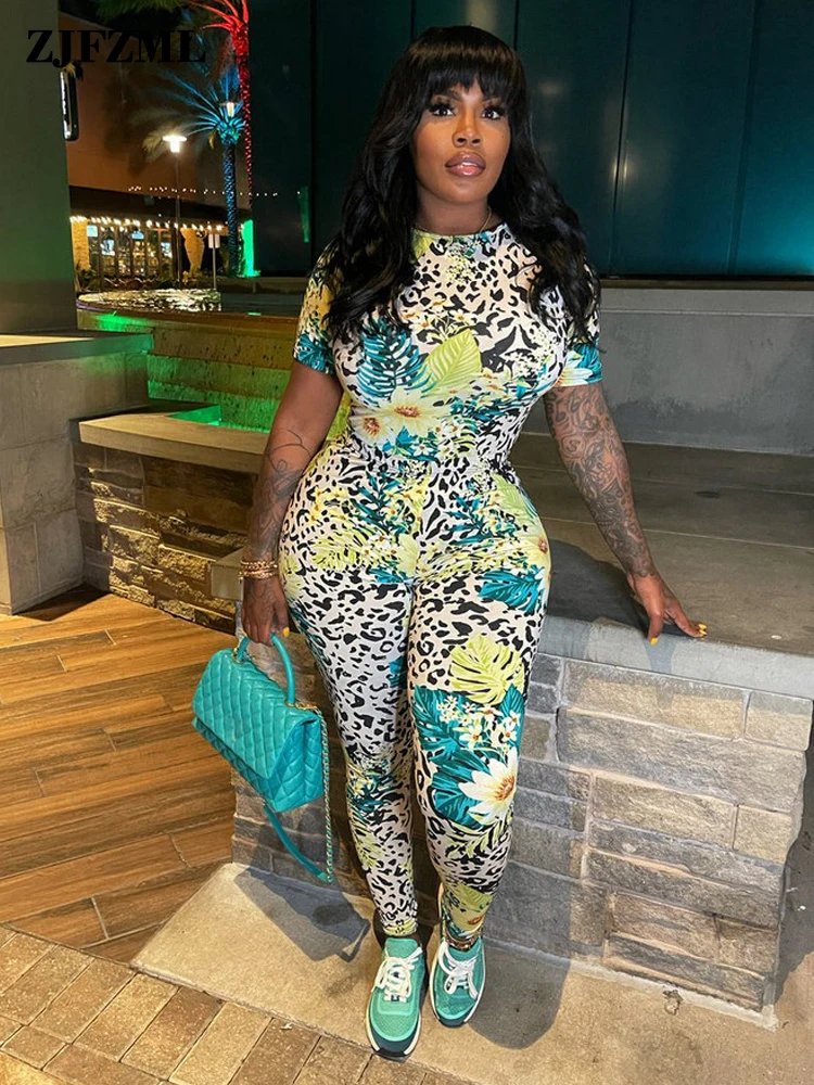 Женский леопардовый спортивный костюм с цветочным принтом, Повседневная футболка с круглым вырезом и коротким рукавом, леггинсы-карандаш с высокой талией, уличная одежда