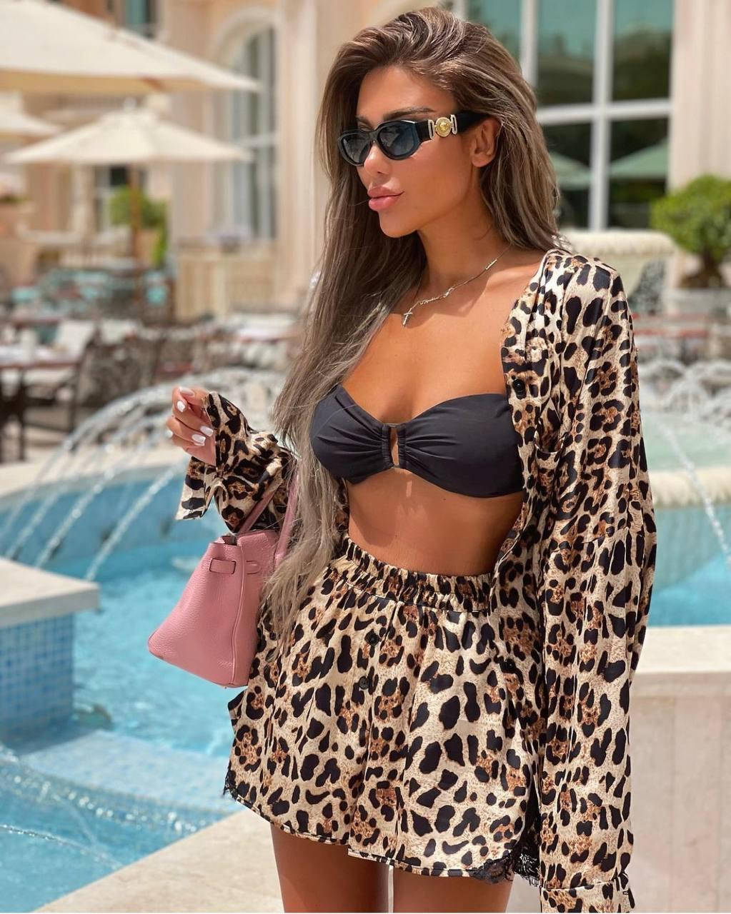 Женский летний костюм Леопард шорты + рубашка Новинка