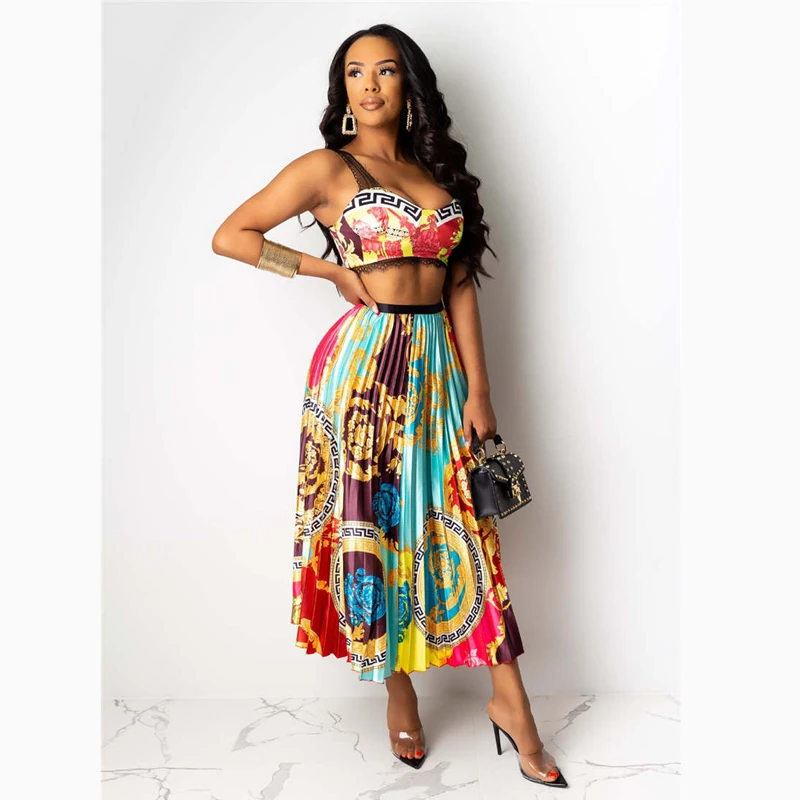 Женский летний костюм 2021, привлекательный укороченный топ на бретельках без рукавов и юбка, Клубная одежда, комплект из 2 предметов, женские ...