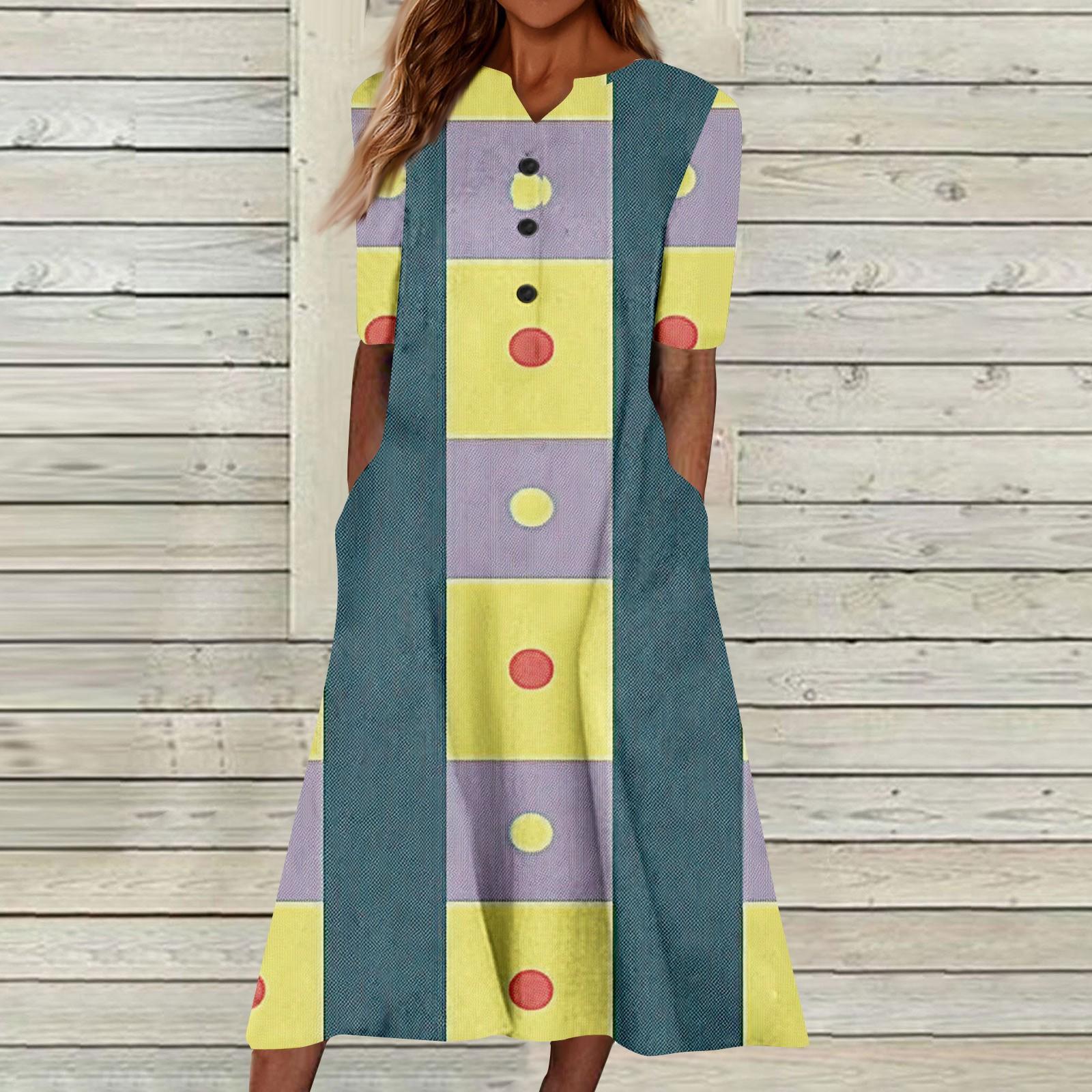 Женский летний повседневный цветочный (Градиент) Платье с коротким рукавом с принтом XL жёлтый
