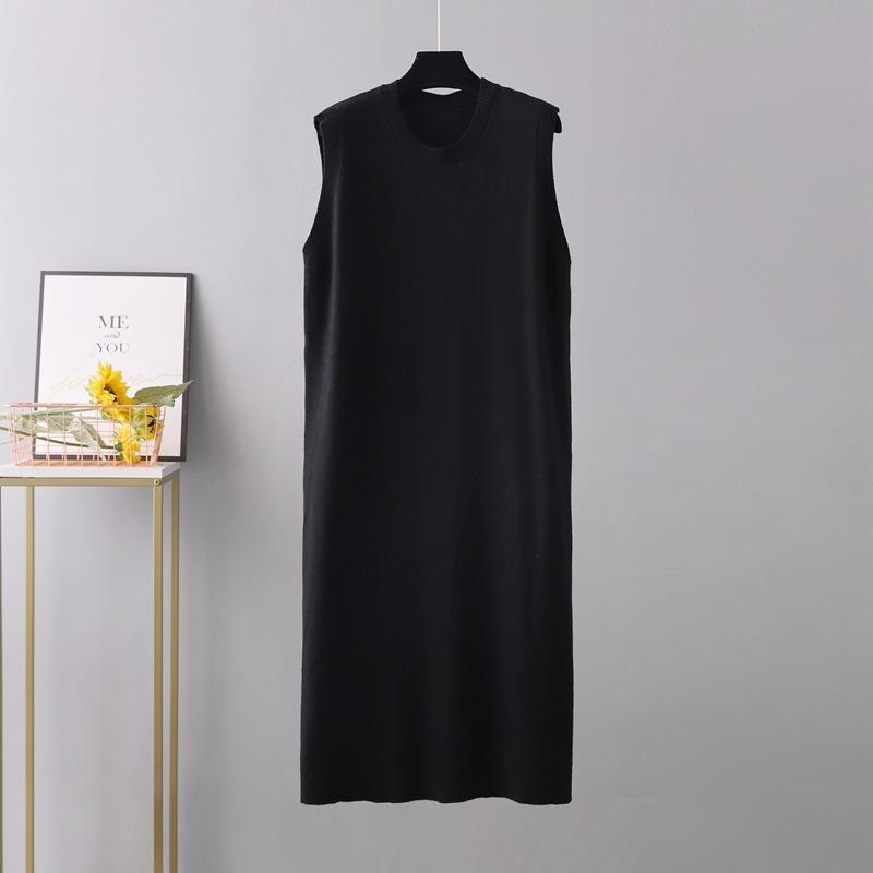 Женский летний сарафан, прямое платье на тонких бретельках, длинное платье без рукавов Celmia, повседневное свободное вязаное платье миди One size чёрный