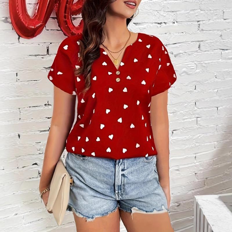 Женский летний свободный топ с короткими рукавами и V-образным вырезом с принтом Love XXL красный