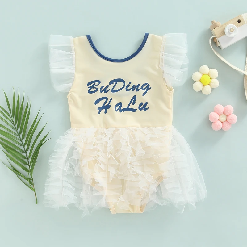 Женский летний сетчатый купальник-бикини с круглым вырезом и буквенным принтом