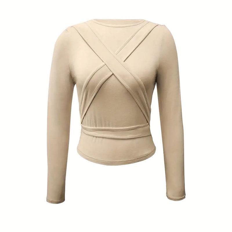 Женский летний тонкий бандажный корсет с круглым вырезом и длинными рукавами XL легкие хаки