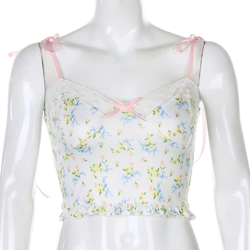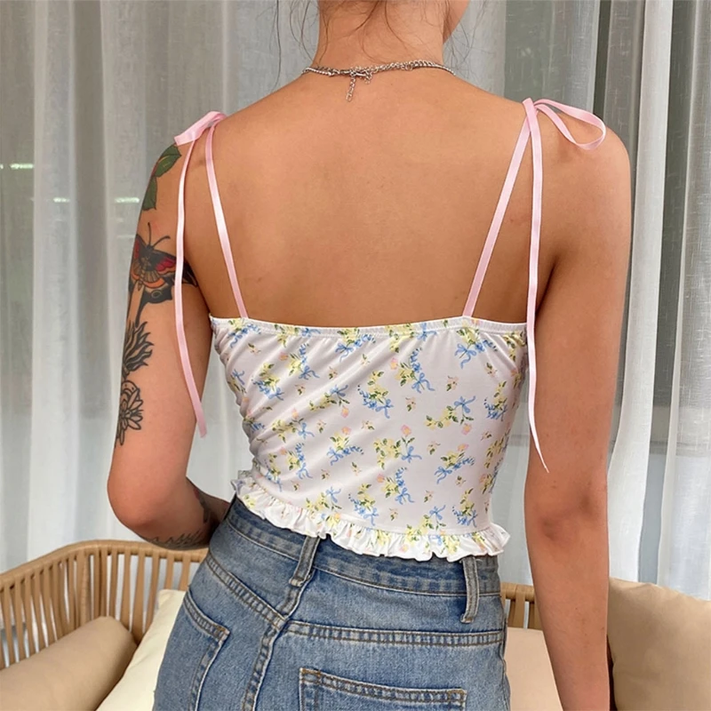 Женский летний укороченный топ на завязках с бантом и V-образным вырезом
