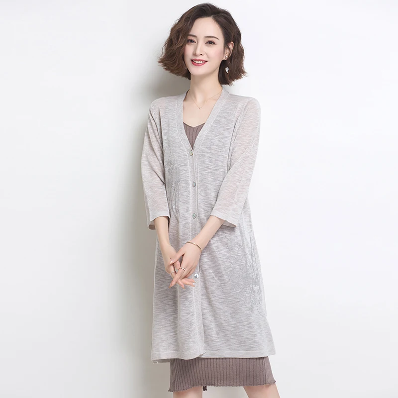 Женский льняной кардиган, Весенняя вязаная одежда с V-образным вырезом, вязаный кардиган с рукавом до локтя, вязаная верхняя одежда, бесплатная доставка