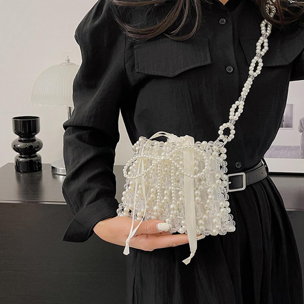 Женский маленький кошелек с бисером, сумка через плечо с полым бантом, тканый жемчуг ручной работы, изысканный элегантный блестящий женский кошелек для монет белый