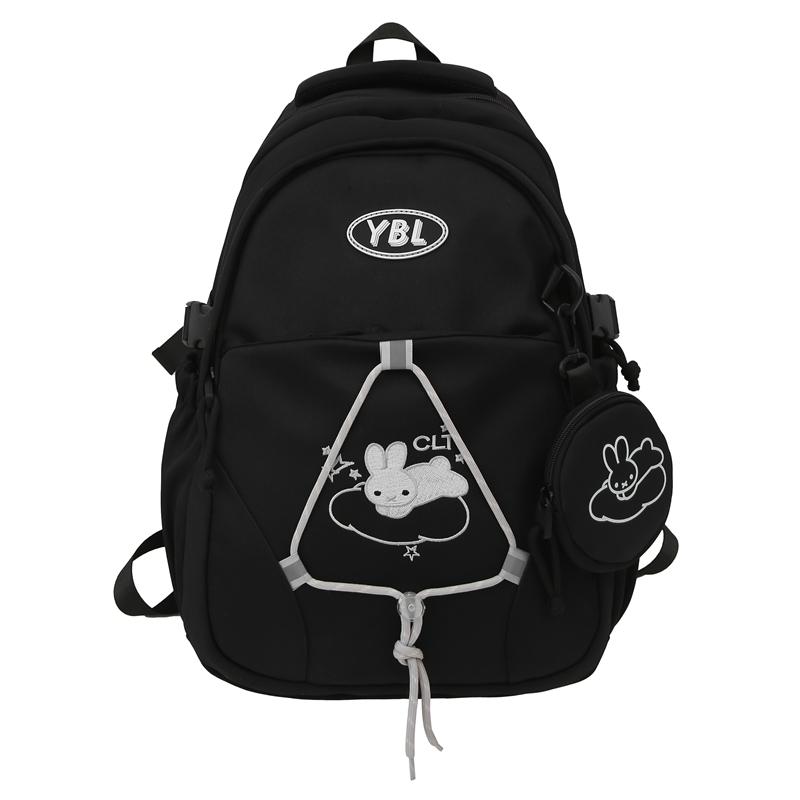 Женский милый рюкзак с принтом кролика, студенческий студенческий стиль, школьная сумка с портмоне чёрный