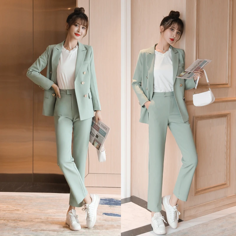Женский модный костюм, Блейзер, осенний Новый двубортный костюм, куртка, повседневные брюки, комплект из двух предметов Ka1213