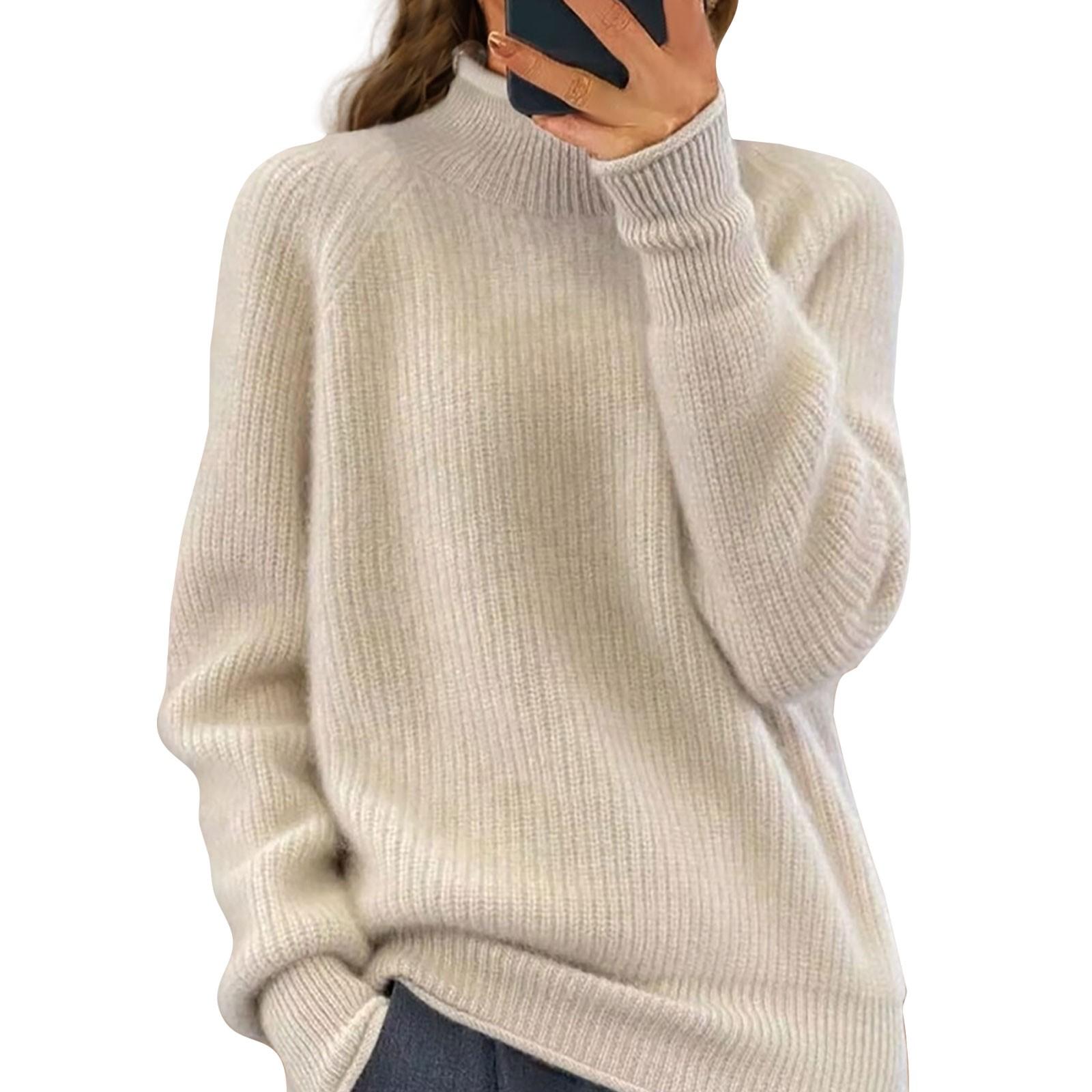 Женский модный круглый вырез однотонный вязаный свитер топ пуловер повседневный свитер L бежевый