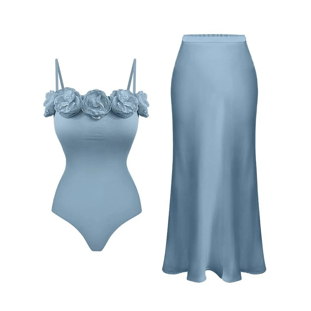 Женский модный однотонный слитный купальник с цветочным рисунком и накидкой, женский летний пляжный костюм, 2023