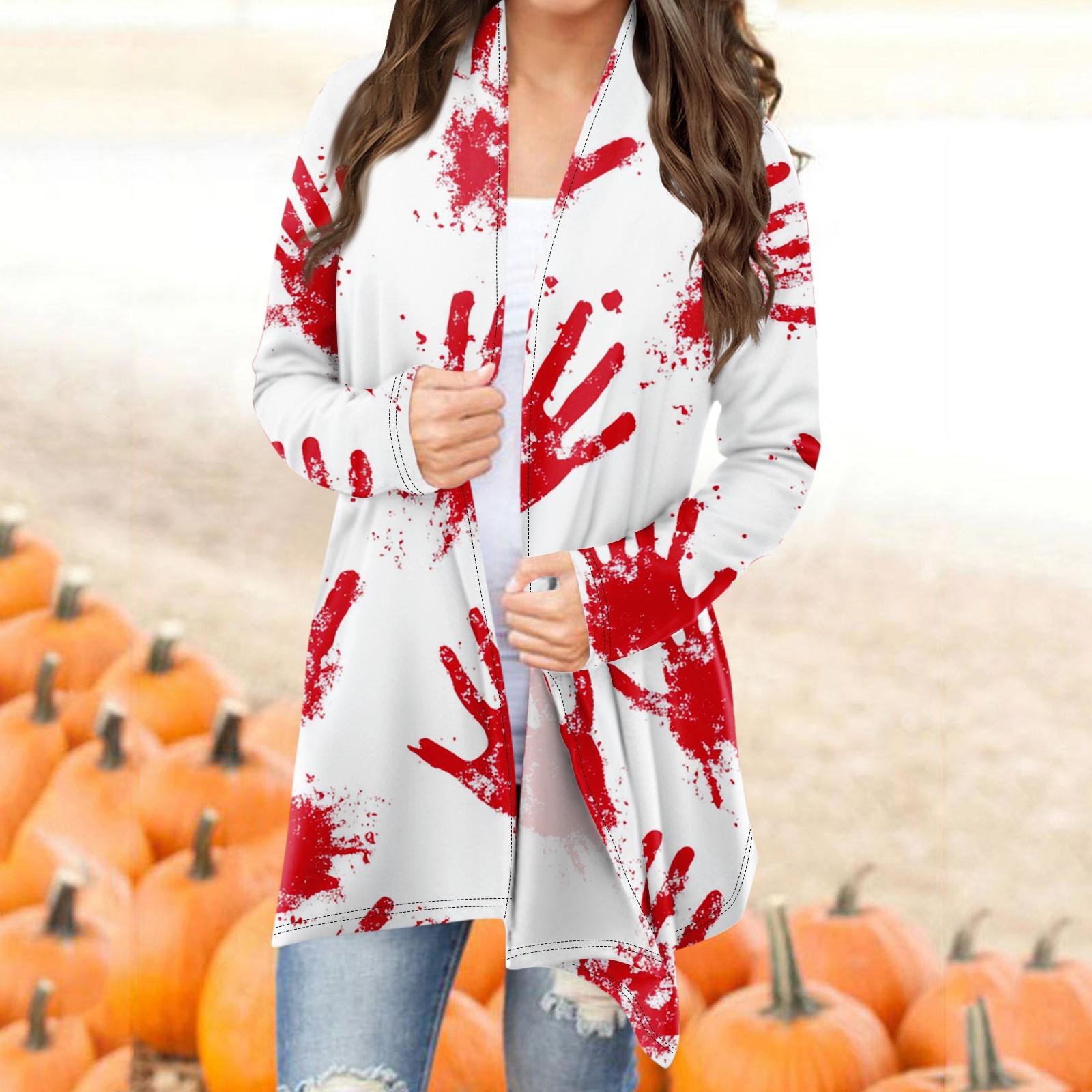Женский модный повседневный кардиган средней длины с принтом на Хэллоуин, куртка, пальто XXL киноварь