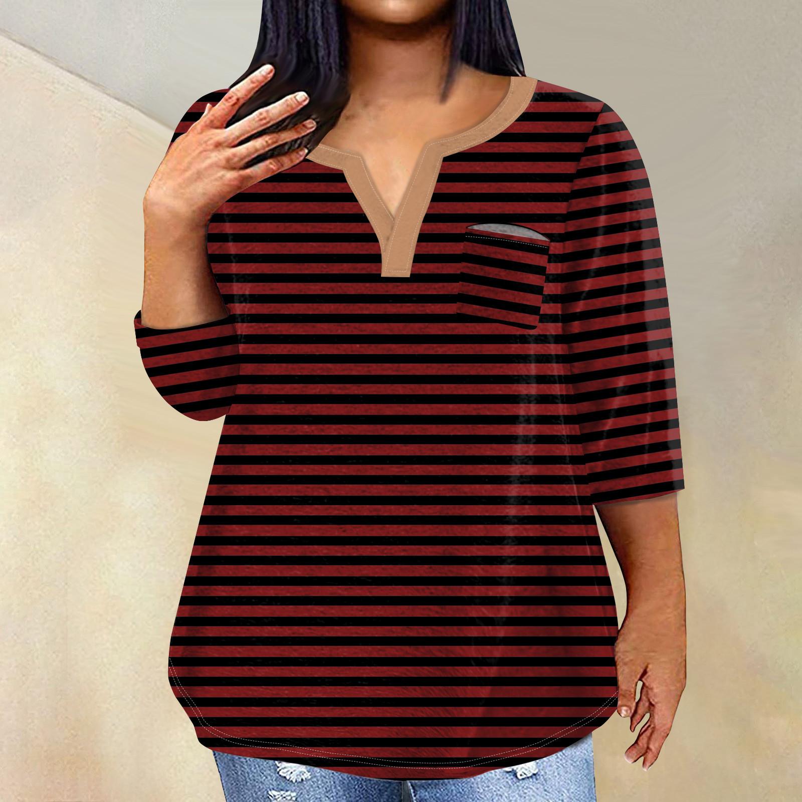 Женский модный повседневный пуловер с рукавами три четверти и V-образным вырезом с принтом, топ с рукавами 3/4 L