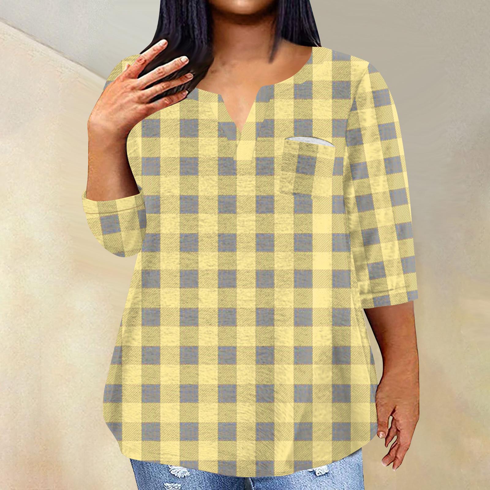Женский модный повседневный пуловер с рукавами три четверти и V-образным вырезом с принтом, топ с рукавами 4/3 XXXXXL жёлтый