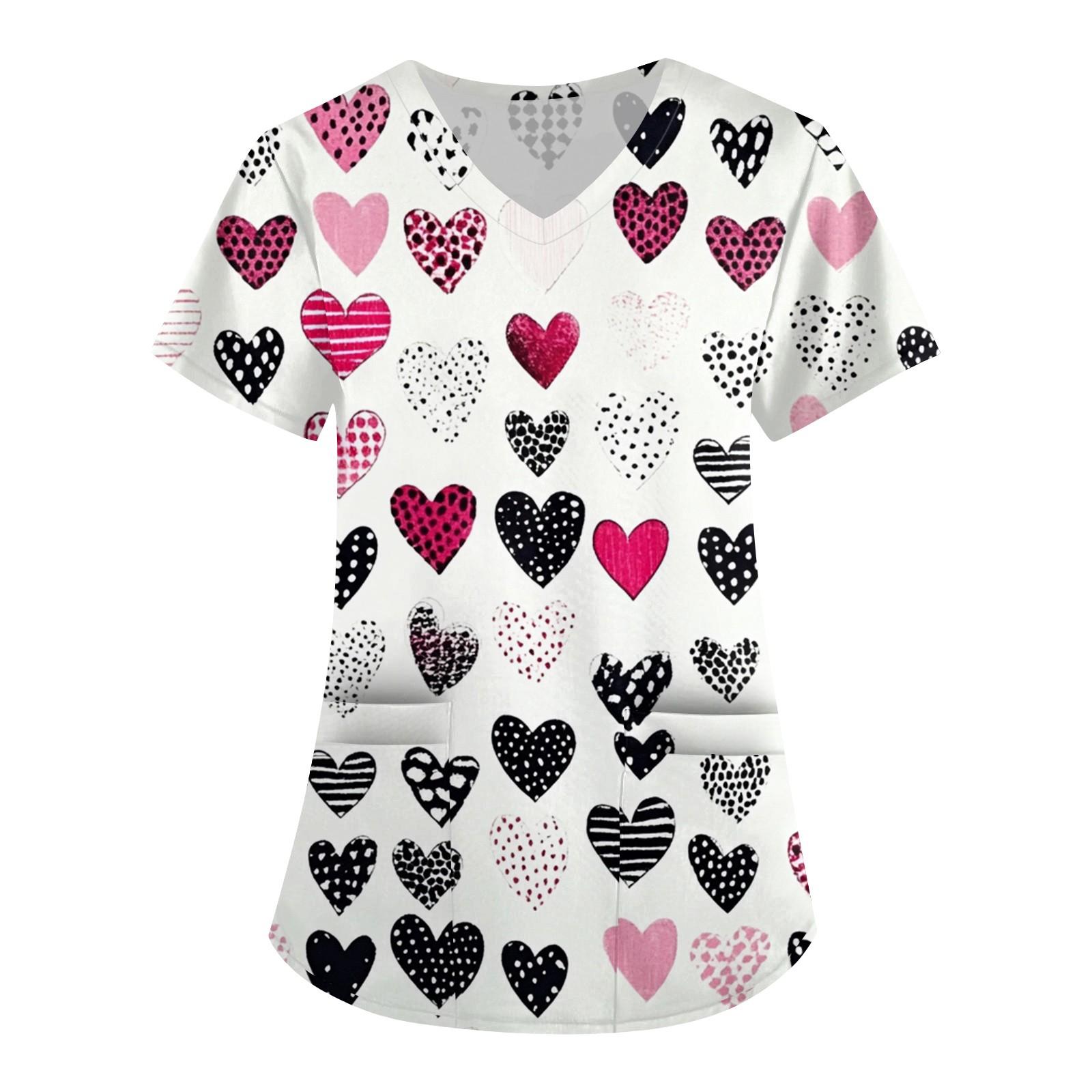 Женский модный повседневный топ с V-образным вырезом на День святого Валентина с принтом XL белый