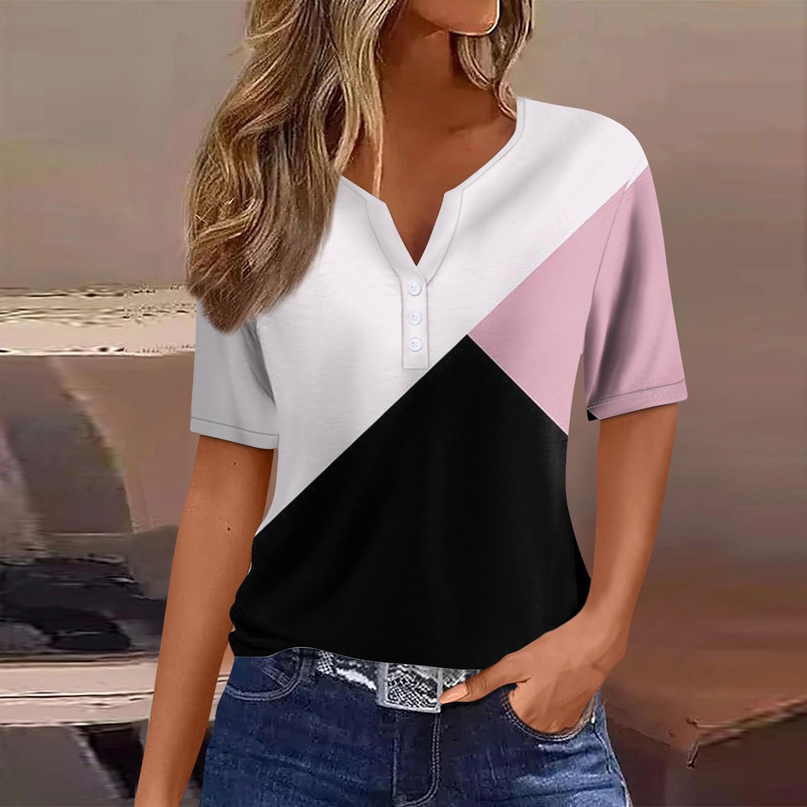 Женский модный повседневный топ с v-образным вырезом и коротким рукавом с геометрическим принтом XL белый
