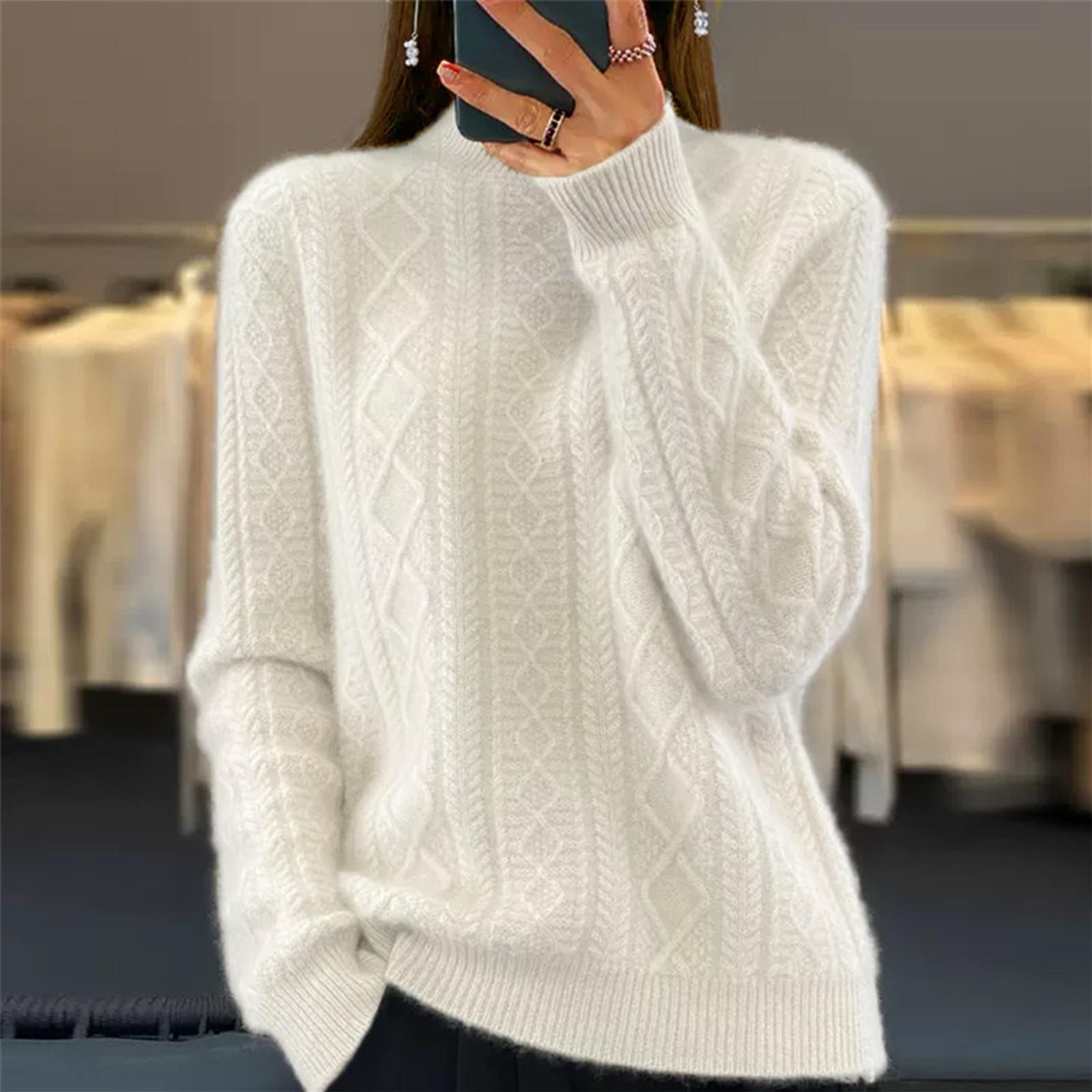 Женский модный свитер с высоким воротом, однотонный трикотажный свитер, повседневный свитер M белый