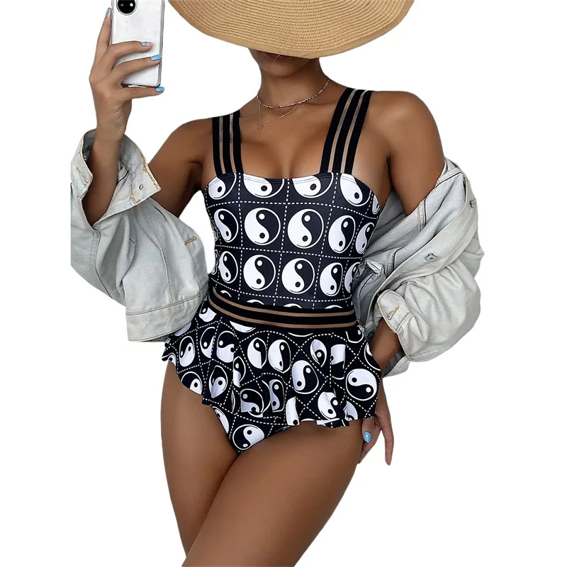 Женский модный сексуальный купальник, новинка 2022, женский летний Монокини на бретелях-спагетти с принтом для пляжного отдыха