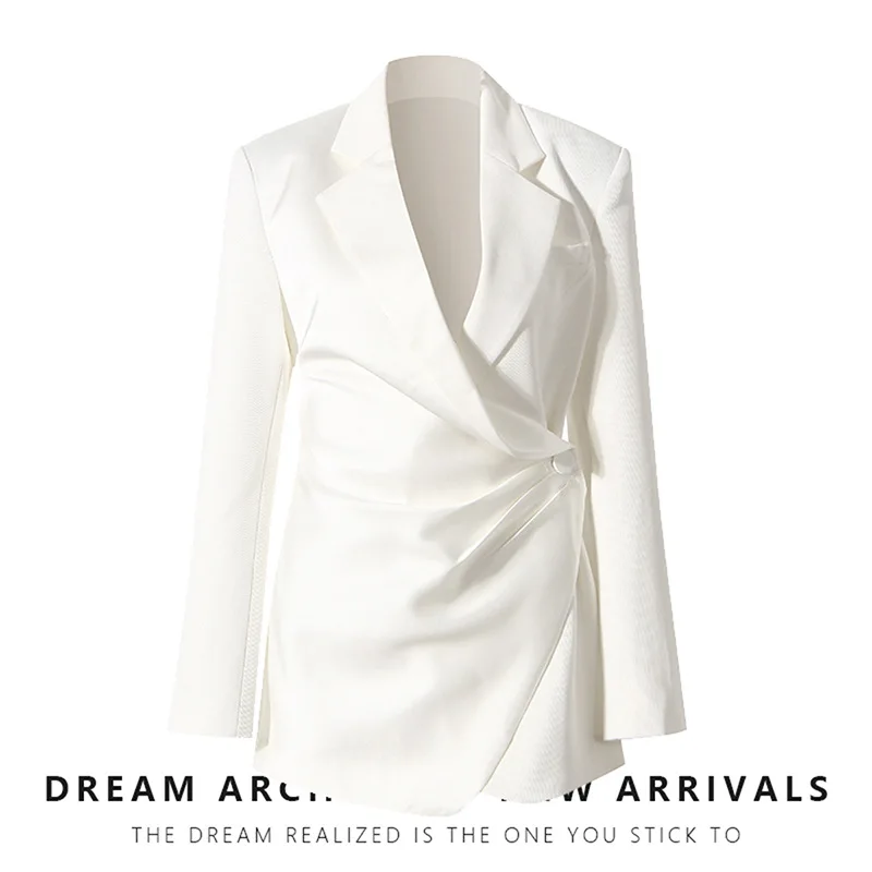 Женский облегающий Блейзер, новый весенний белый плиссированный длинный пиджак на одной пуговице с боковой стороны, 2023