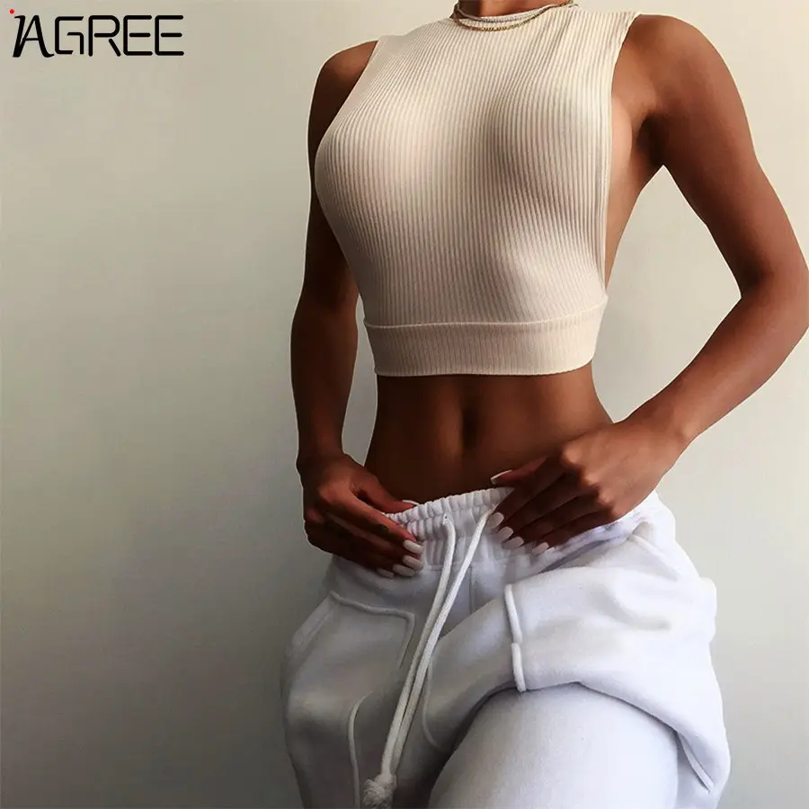 Женский облегающий Топ без рукавов, однотонный красный/белый короткий топ