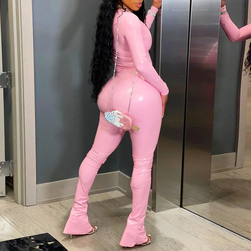 Женский облегающий костюм из ПУ кожи, с длинным рукавом